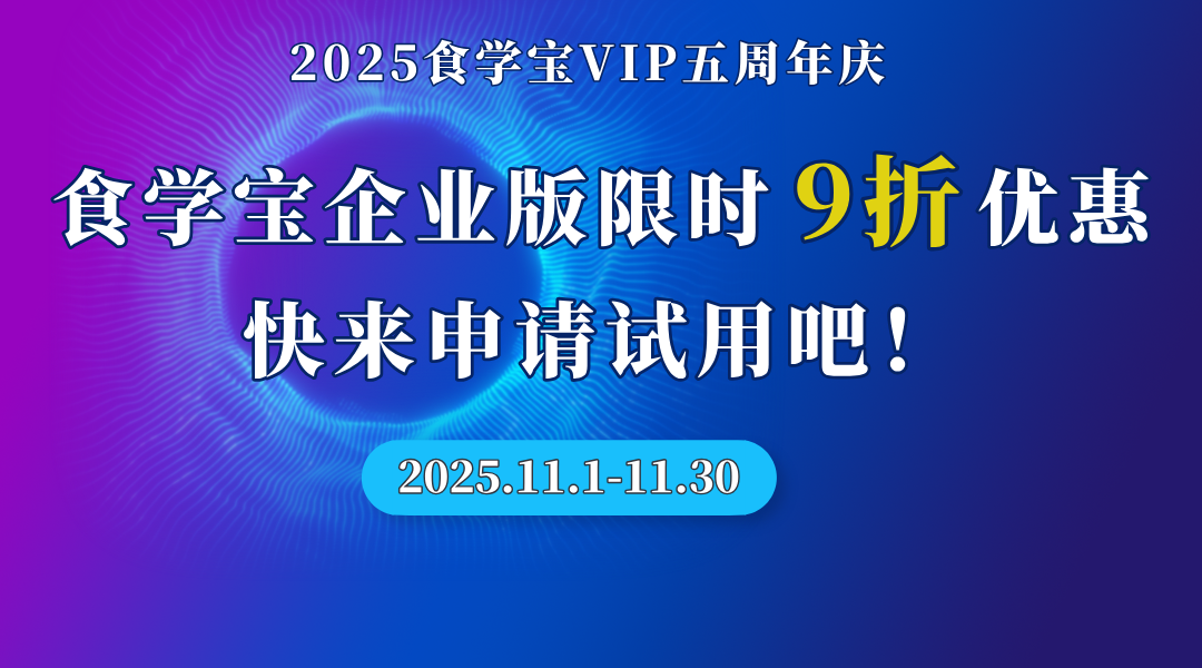 核心提示:2025食学宝VIP五周年庆之际,食学宝企业版也给大家送福利啦!开通企业版享受限时9折优惠!