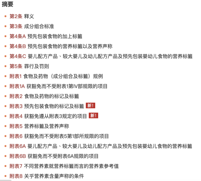 香港的基本食物法例载于公众卫生及市政条例(第132章)第V部,其主要条文涵盖对食物购买人的一般保障、与出售不宜食用的食物和搀杂食物有关的罪行、食物成分组合及标签、食物卫生,检取及销毁不宜食用的食物。香港食品标签标识应符合《食物及药物(成分组合及标签)规例》(香港规例第132W章),共分为6条8个附表,本次课程主要介绍第2条、第4条(A\B\C)、第5条、附表2、附表3、附表4、附表5、附表6(包含A\B)的内容,涉及食品标签的一般要求、预先包装食物标签要求、婴幼儿食品标签要求、营养标签及营养声称的要求。