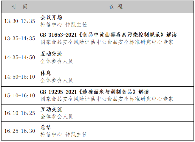 近期,食品安全国家标准审评委员会发布了多项食品安全国家标准。为促进行业企业正确理解和科学执行标准,强化食品安全国家标准的贯彻实施,提升食品质量安全水平,受北京市卫健委委托,科信食品与健康信息交流中心拟召开2021年北京市卫生健康委食品安全标准大课堂(第三期)宣贯会。现将具体事宜通知如下: