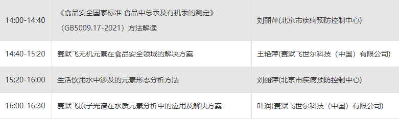| 《食品安全国家标准 食品中总汞及有机汞的测定》(GB5009.17-2021)方法解读 | 【2022-03-02 14:00 - 2022-03-02 14:40】 | 已结束 |